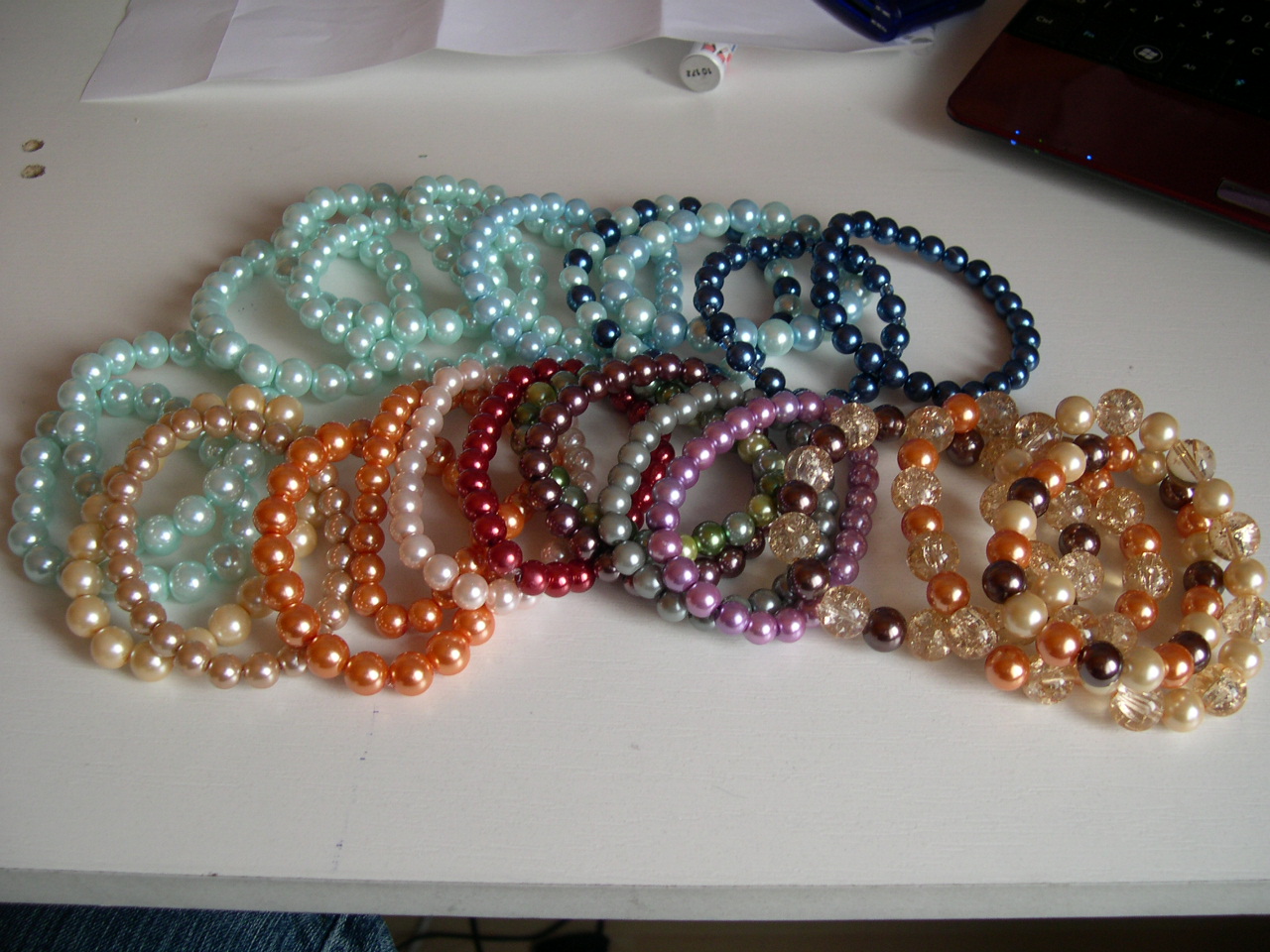 Újabb teklagyöngyös karkötők - gumisak is